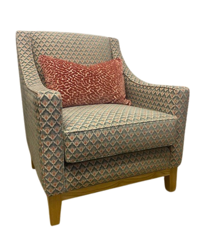 The Adam Chair, a stylish and comfortable chair with its striking plinth and generous seat cushion. The piping detail comes as standard. The chair has a Dacron wrapped foam seat cushion and a fixed back. Also available as a sofa.