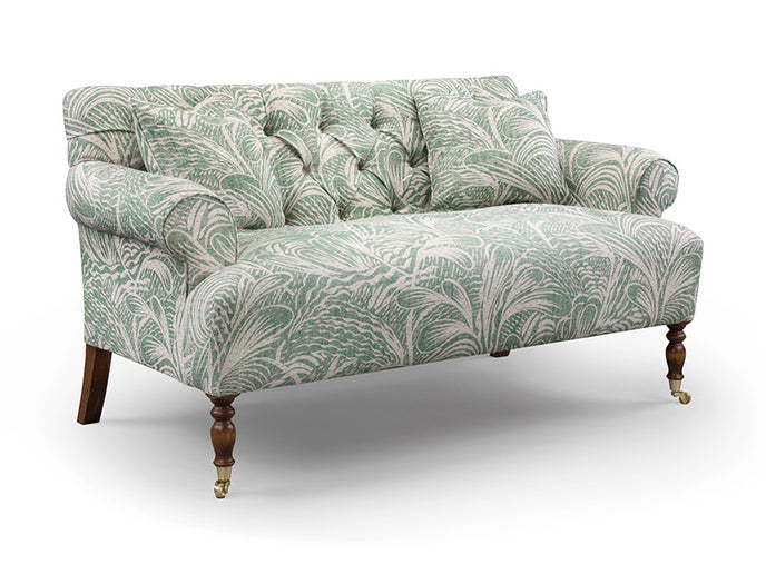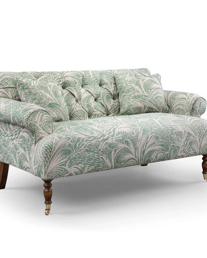 The Bennett Sofa, a charming sofa, great for a kitchen, snug or somewhere that a large sofa just won’t do. It features scrolled arms, buttoned back and sprung seat.