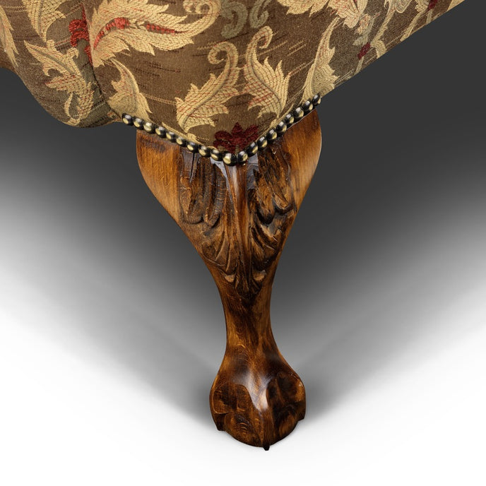 The Cavendish Wing Chair, a stunning armchair featuring a coil sprung seat and flat sprung back, polished carved ball and claw wood legs and hand studded detail.