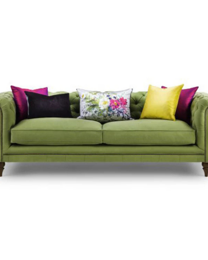 The Chesterfield Comfort Sofa, a stunning contemporary take on the traditional style. This elegant sofa is supremely comfortable. It features a flat sprung seat with sumptuous duck feather and down seat cushions. The deep buttoning and hand studded detail complete the look.