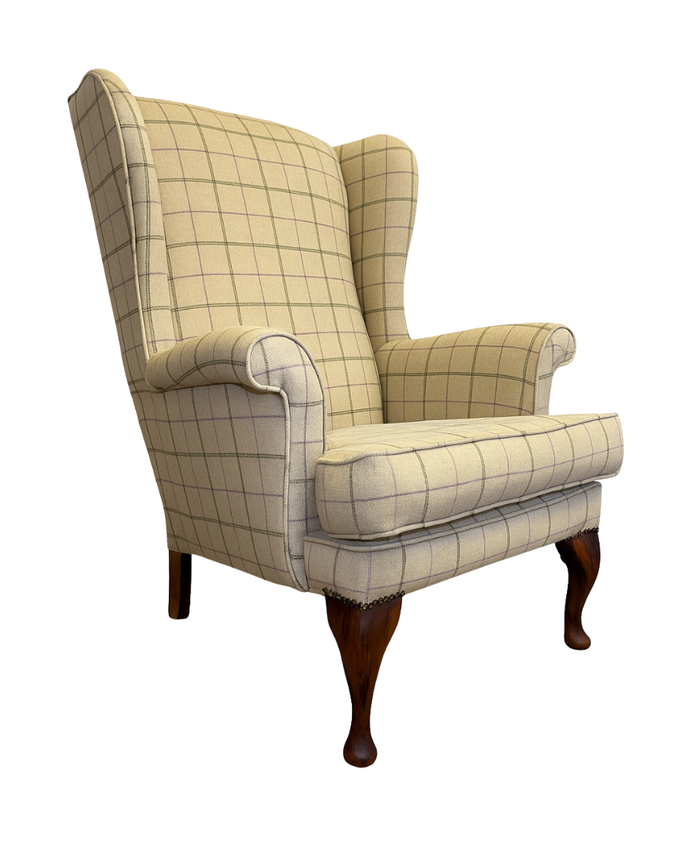 Oakham Wing Chair in Beige Wool Check