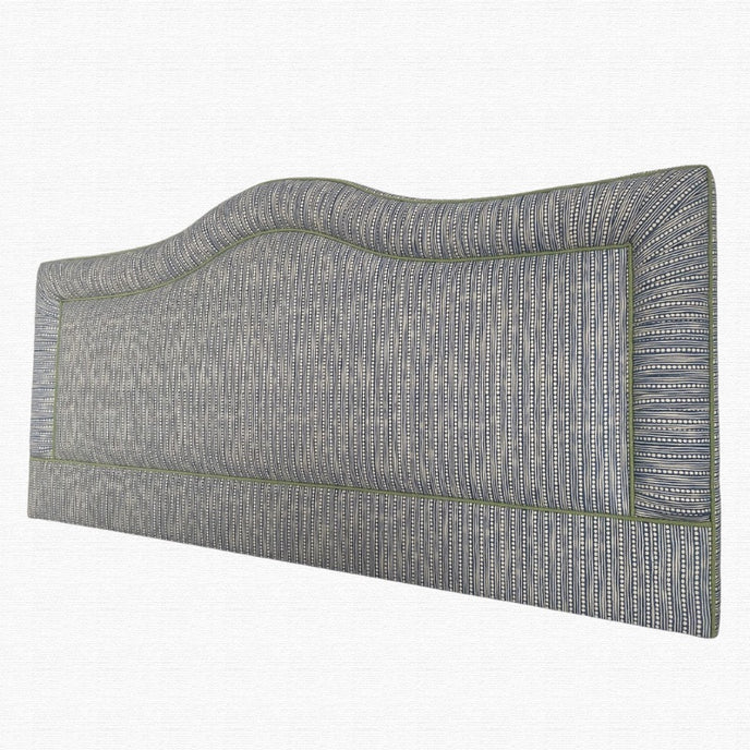 The Emily, a headboard offering a classic design with a simple shaped top edge. It looks fabulous in a patterned fabric, a simple ticking stripe or a plain fabric with a contrast border. There is an option of a plain or ruched border edge.