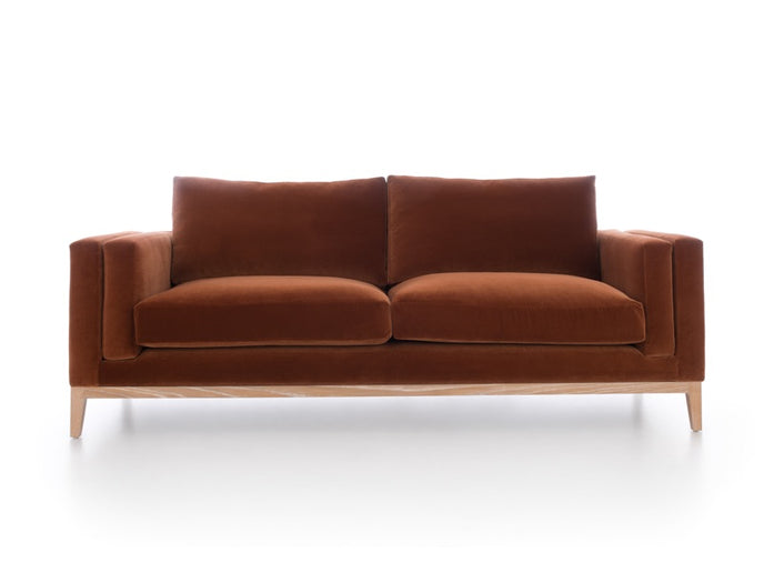 The Fitzroy Sofa, a sofa with stylish clean lines that sits on a wooden plinth. The sofa has unique fixed side cushions which set it apart from our other sofas. It has Feather/Fibre Sprinkle seat cushions and Fibre back cushions. The Fitzroy Sofa would sit well within any home.