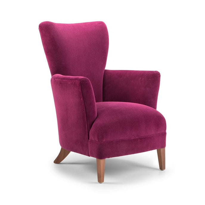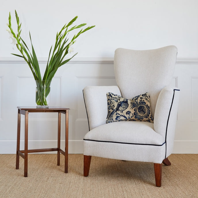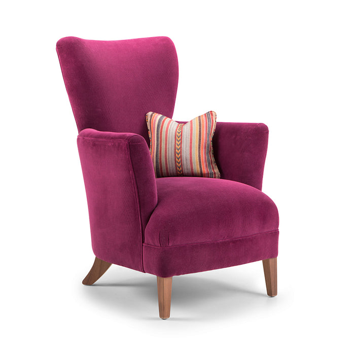 The High Backed Chair, with a good internal back height and comfortable proportions, it is a traditionally upholstered chair featuring a hardwood frame, a flat sprung seat and polished tapered legs.