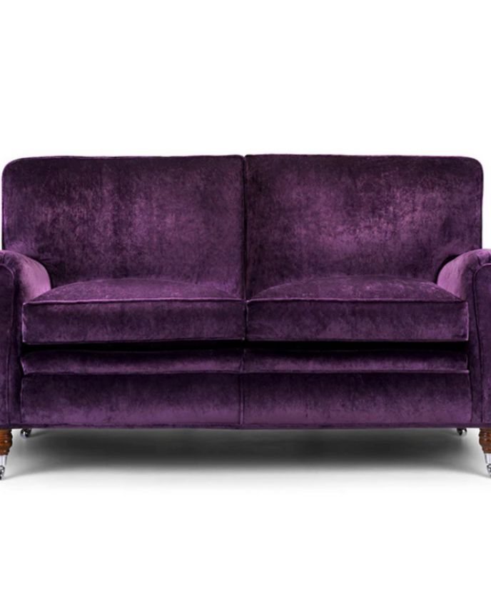 The Lady Jane Sofa, with scroll arms and comfortable seat and back cushions. This sofa is made with traditional coil springs and duck feather and down seat and back cushions as standard.