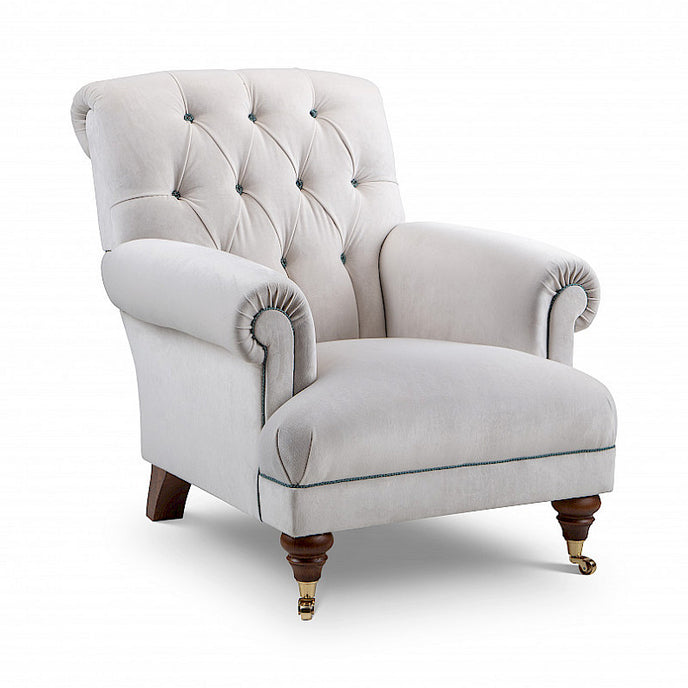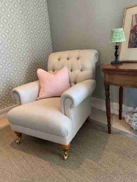 The Library Chair, a popular and very comfortable armchair made with traditional coil springs. Its design is based on an original antique. This chair has a nice deep seat and sits well amongst many styles of furniture.