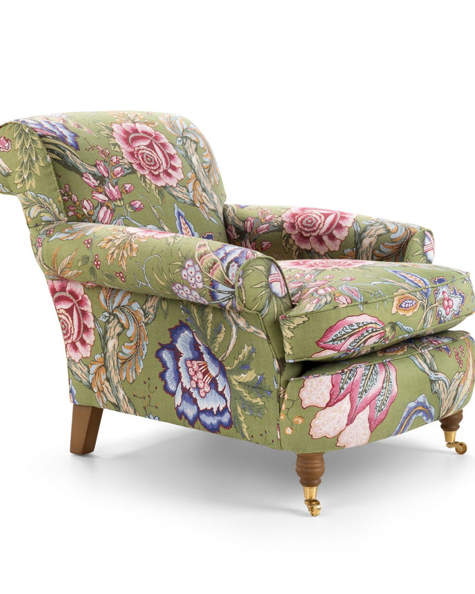 The Philip Arthur, inspired by Kate's grandfather’s beloved armchair, it beautifully honours tradition while offering timeless sophistication for today’s homes. Crafted with hand-tied coil springs, a deep seat, and layers of natural horsehair and wool for comfort, this chair is made to last for generations. It features a feather & down seat cushion as standard.