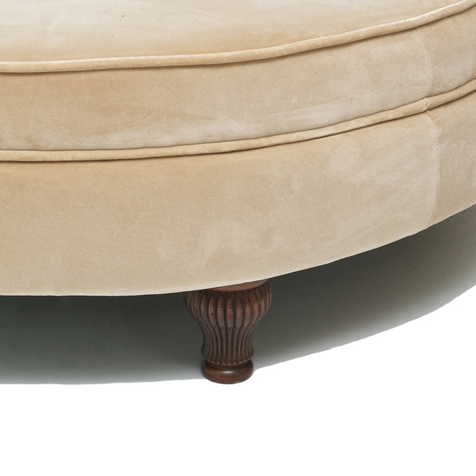 The Wesley Footstool, stylish with its simple design, looks beautiful in the centre of any lounge area. It features a plain top with a single button and solid hardwood turned legs.